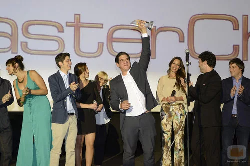 Juan Manuel con el trofeo de 'MasterChef' en la sala Kinépolis de Madrid