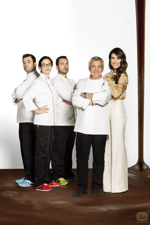 Paco Torreblanca y Raquel Sánchez Silva junto a los miembros del jurado de 'Deja sitio para el postre'