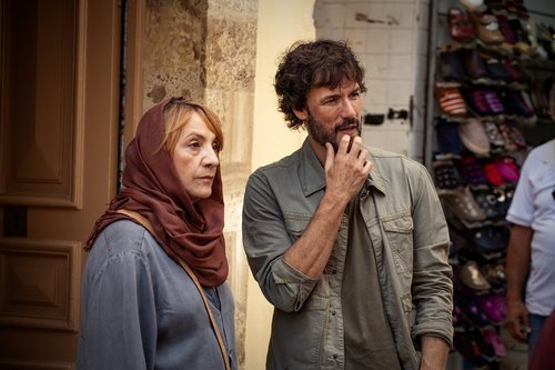 Blanca Portillo y Daniel Grao rodando 'Promesas de arena' en Túnez