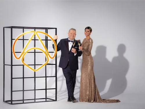 Cristina Pedroche y Alberto Chicote brindan, junto al logo de Antena 3, para promocionar las Campanadas 2017-2018 de Atresmedia.