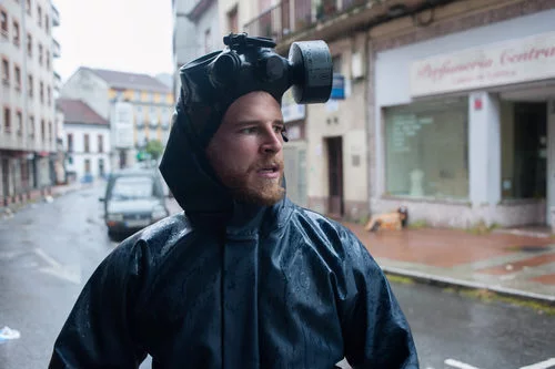 Álvaro Cervantes se muestra algo preocupado en una de las imágenes promocionales de la nueva serie de Movistar+, 'La zona'.