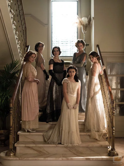 Todas las hermanas posan en una escalera en una imagen promocional de la nueva serie de Televisión española 'Seis hermanas'.