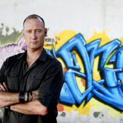 Pedro García Aguado posa en un edificio abandonado con graffitis para promocionar la nueva entrega en Cuatro.