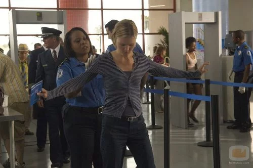 La seguridad del aeropuerto cachea a Lumen (Julia Stiles).