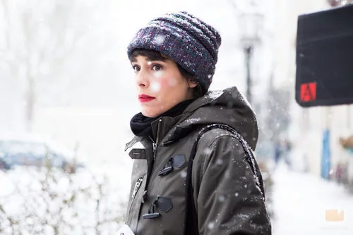 Primer plano del personaje de Belén Cuesta en la serie de Antena 3. Imagen tomada en Berlín, en plena tormenta de nieve.