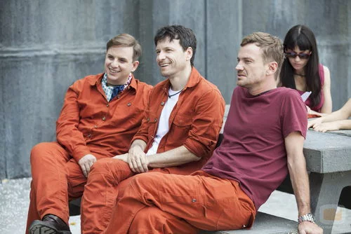 (1x01) Muriel (Pablo Geretto), Sandro (Antonio Birabent) y Rex (Guillermo Pfening) asisten a la realización de la primera prueba de 'Supermax'.