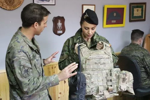 Paula Echevarría mira con mucha atención el chaleco que tendrá que llevar en su nuevo papel como paracaidista de 'Los nuestros 2'.