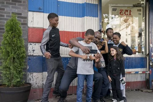 Mike Colter interpreta al poderoso superhéroe de Marvel, que toma una fotografía junto a unos niños de Harlem en la segunda temporada de 'Luke Cage'.