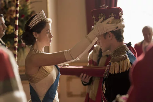 La Reina Isabel II corona a su marido Felipe, convirtiéndolo así en Príncipe de Inglaterra, en la segunda temporada de 'The Crown'.