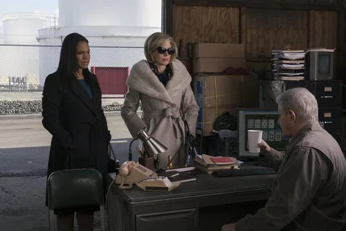 Diane Lockhart y Liz Lawrence, personajes de las actrices, hablan con un hombre en una escena de la nueva temporada de 'The Good Fight'.