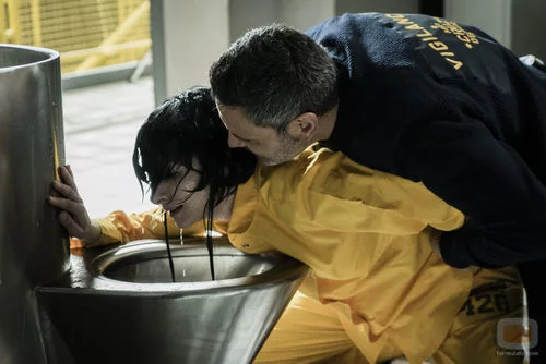 (2x09) Fabio castiga a la presa Zulema y mete su cabeza dentro de un váter en el capítulo 9 de la segunda temporada de 'Vis a vis'.