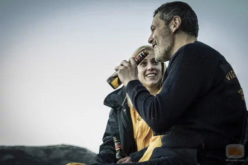 (2x08) Macarena (Maggie Civantos) y Fabio (Roberto Enríquez) conversan animadamente y beben cerveza juntos en 'Vis a vis'.