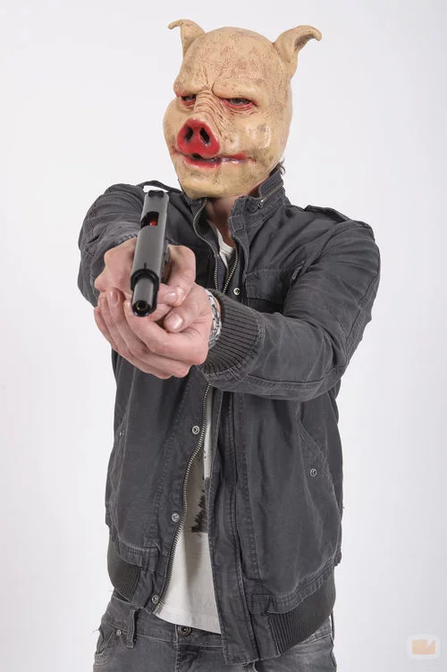 Iñaki Font posando con careta de cerdo