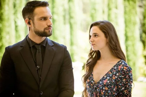 Jesús Castro y Sara Vidorreta en una imagen de la serie 'Secretos de Estado', en la que Jesús interpreta el papel de Jefe de Seguridad del Presidente del Gobierno.