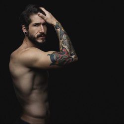 Daniel G. Prim, sin camiseta, posa cabizbajo