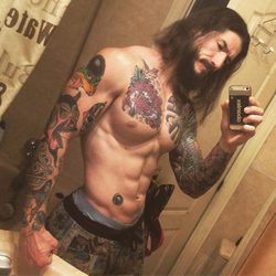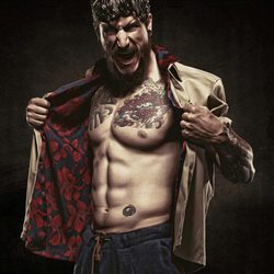 Daniel G. Prim, con el pelo suelto y sin camiseta