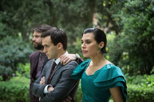Chete (Jon Arias) y Jose (Roser Tapias), los compañeros de trabajo de Carlos Alcántara (Ricardo Gómez), le acompañan en esta foto de la serie de La 1.