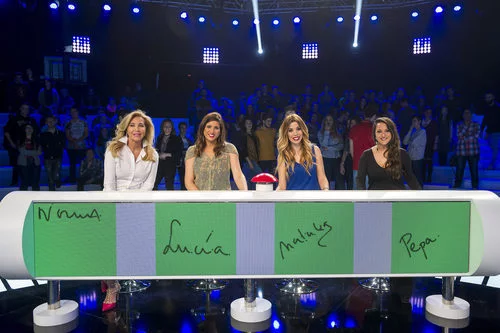 El equipo de las chicas Norma Duval, Lucía Jiménez, Natalia OT y Pepa Rus en el programa 'El gran reto musical' de los lunes que presenta Eva González en TVE.
