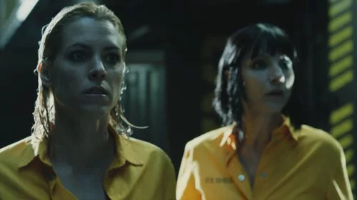 Maca y Zulema con miradas sorprendidas en "la noche de los cuchillos largos" de Cruz del Norte en el segundo episodio de la tercera temporada de 'Vis a vis'.