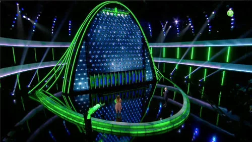 Imágenes del concurso 'The Wall: Cambia tu vida' en las que se ve el plató iluminado de verde tras acertar una de las respuestas.