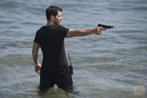 Gamboa apuntando a su objetivo en el último episodio de 'El Barco'