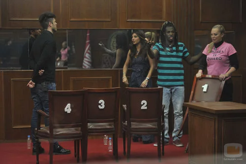 Fede, Aguasantas, Belén Esteban y Coman hablan en la sala donde se celebró el juicio en la undécima gala de 'GH VIP 3'