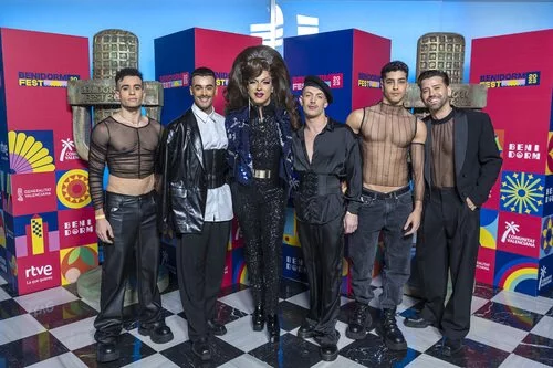 Posado de Sharonne y su equipo, en la inauguración del Benidorm Fest 2023