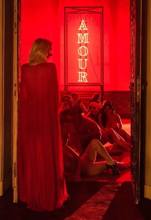 Unas puertas lujosa y una decoración elegante al tiempo que provocativa da pie a los multitudinarios encuentros sexuales del club privado de la serie de Movistar+.