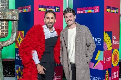 Posado de Aitor Albizua y Miki Núñez, en la inauguración del Benidorm Fest 2023