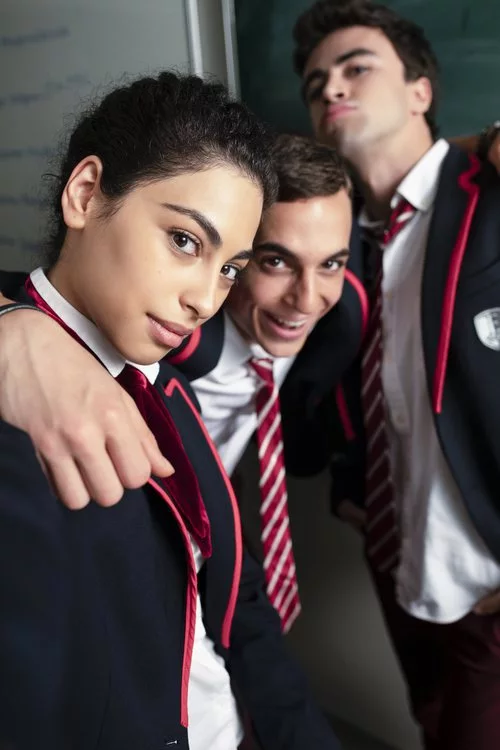 Los actores Mina El Hamani, Miguel Herrán e Itzán Escamilla son compañeros de clase en Las Encinas, el exclusivo colegio de 'Élite'.