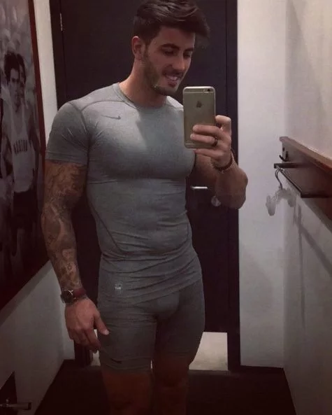 El extronista de 'Mujeres y hombres y viceversa' y concursante de 'Supervivientes 2017' se fotografía con su ajustada ropa de deporte antes de hacer deporte.