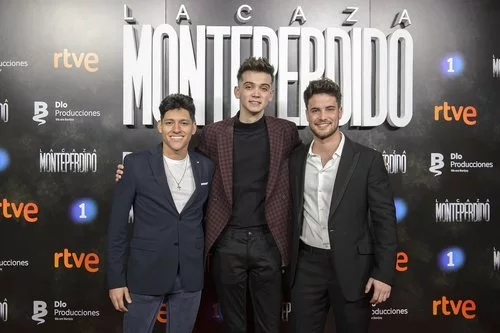 Alfonso, Dave y Joan Garrido, concursantes de 'OT 2018', asisten a la premiere de 'La Caza. Monteperdido', la serie de Televisión Española.