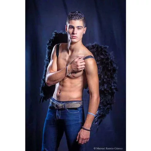 El atractivo tronista Joni Mendéndez, de 'Mujeres y hombres y viceversa', nos deleita con su desnudo torso, posando con unas alas negras.