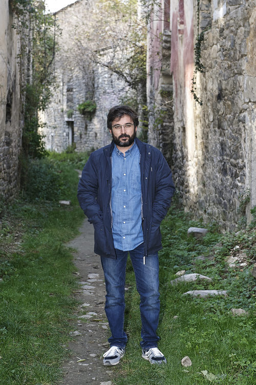 El presentador Jordi Évole posa en Jánovas, lugar al que acudieron para grabar el programa 'Jánovas, el pantano fantasma'.
