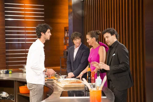 El ganador de la quinta edición de 'MasterChef' charla con los miembros del jurado formado por Pepe, Jordi y Samantha.