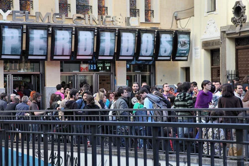 Decenas de seguidores de 'Lost' esperan la llegada de Jorge García en un cine de Madrid.