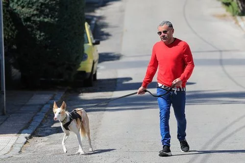 Jorge Javier Vázquez paseando con su perro durante su recuperación