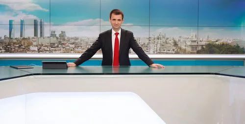 José Pablo López es fotografiado en el plató de los informativos de Telemadrid