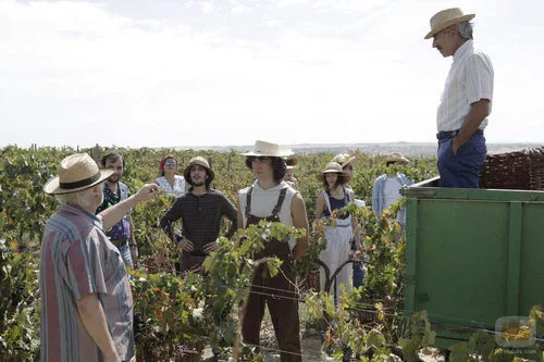Antonio Alcántara, interpretado por el actor Imanol Arias aparece encima de un camión de carga en un campo de vendimia junto a Miguel Alcántara y un grupo de vendimiadores.