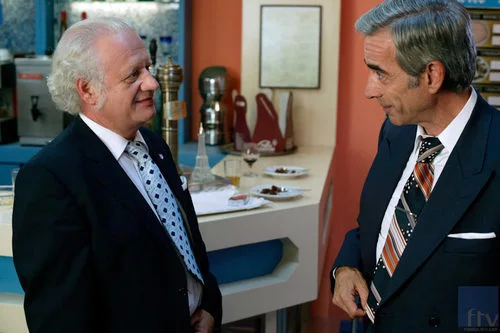 Antonio Alcántara (Imanol Arias) y Miguel (Juan Echanove) conversan animadamente en el capítulo "Bodas, bautizo y banquetes" de la serie 'Cuéntame cómo pasó'.