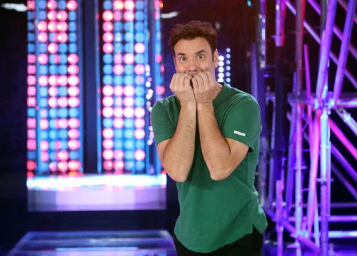 El actor Miquel Fernández posa con cara de susto y las manos en la boca en el nuevo plató de 'Tu cara me suena'.