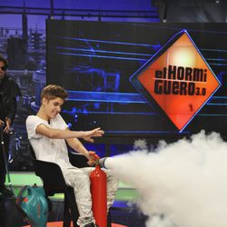 Justin Bieber con un extintor