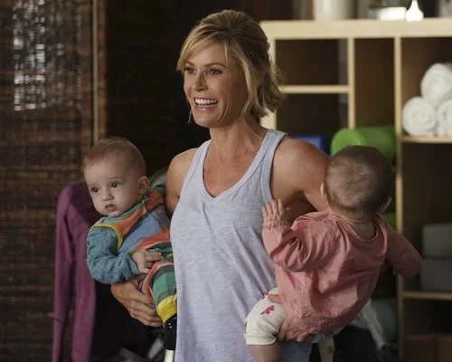 Claire Dunphy (Julie Bowen) durante un episodio de la temporada 11 de 'Modern Family' junto a sus nietos Poppy y George.