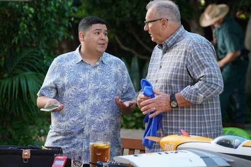 Manny Delgado (Rico Rodriguez) charla con Jay Pritchett (Ed O'Neill) junto a la maqueta de un avión en uno de los capítulos de la 11ª temporada de la serie 'Modern Family'.