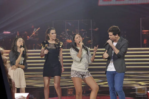 María, Carlos y Pilar cantan con su coach.