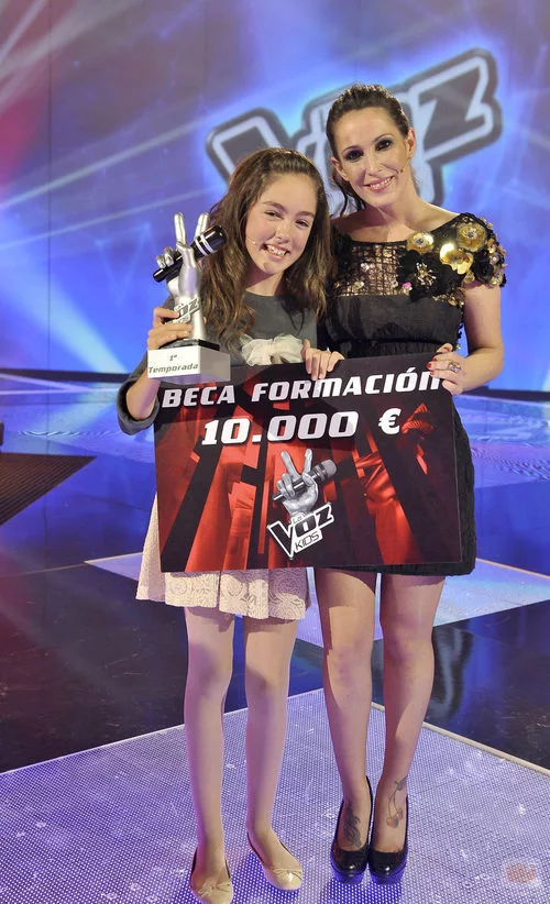 María Parrado y Malú posan con el premio de 'La Voz Kids'
