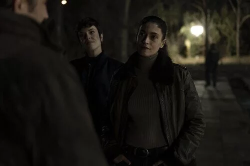 Los personajes interpretados por Lucía Martín Abello y Nerea Barros recorren la calle de noche en la serie de Atresplayer.