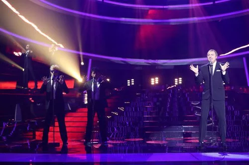 El cómico, acompañado de dos coristas, interpreta la canción "You can't hurry love" en la octava gala del programa