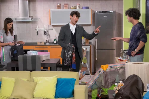 Gabi, interpretado por Dani Muriel, mantiene una conversación con Javi mientras Lola está mirando el bolso.