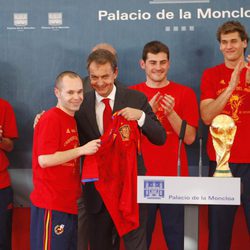 Iniesta le entrega la camiseta de la Selección a Zapatero